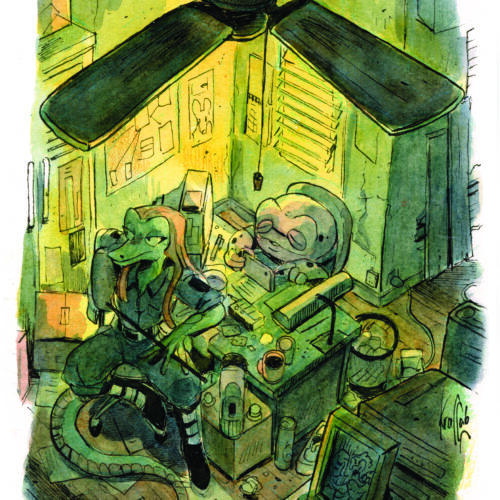 Ayant longtemps baigné dans la BD Franco-belge et étant passionné de pop culture et d’animation, mon dessin est vivant, expressif et dynamique. Sur mes réseaux, je publie régulièrement des illustrations de mes personnages récurrents ainsi que des strips humoristiques sur mon malaise social.